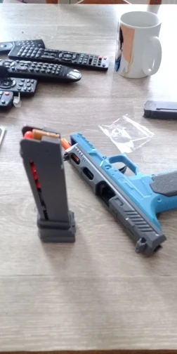 Découvrez le pistolet jouet SIG17, un modèle réaliste conçu pour offrir une expérience de jeu amusante et sécurisée. Ce jouet permet un tir en rafale avec éjection des douilles, pour un effet bluffant sans danger.